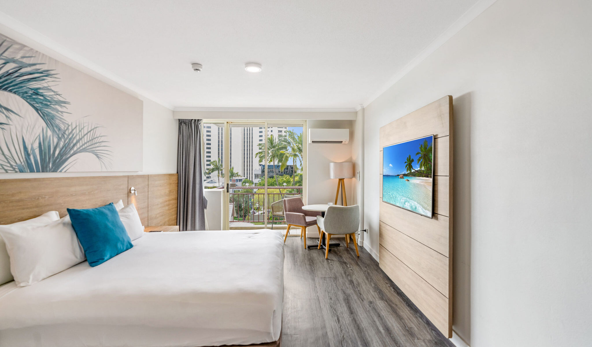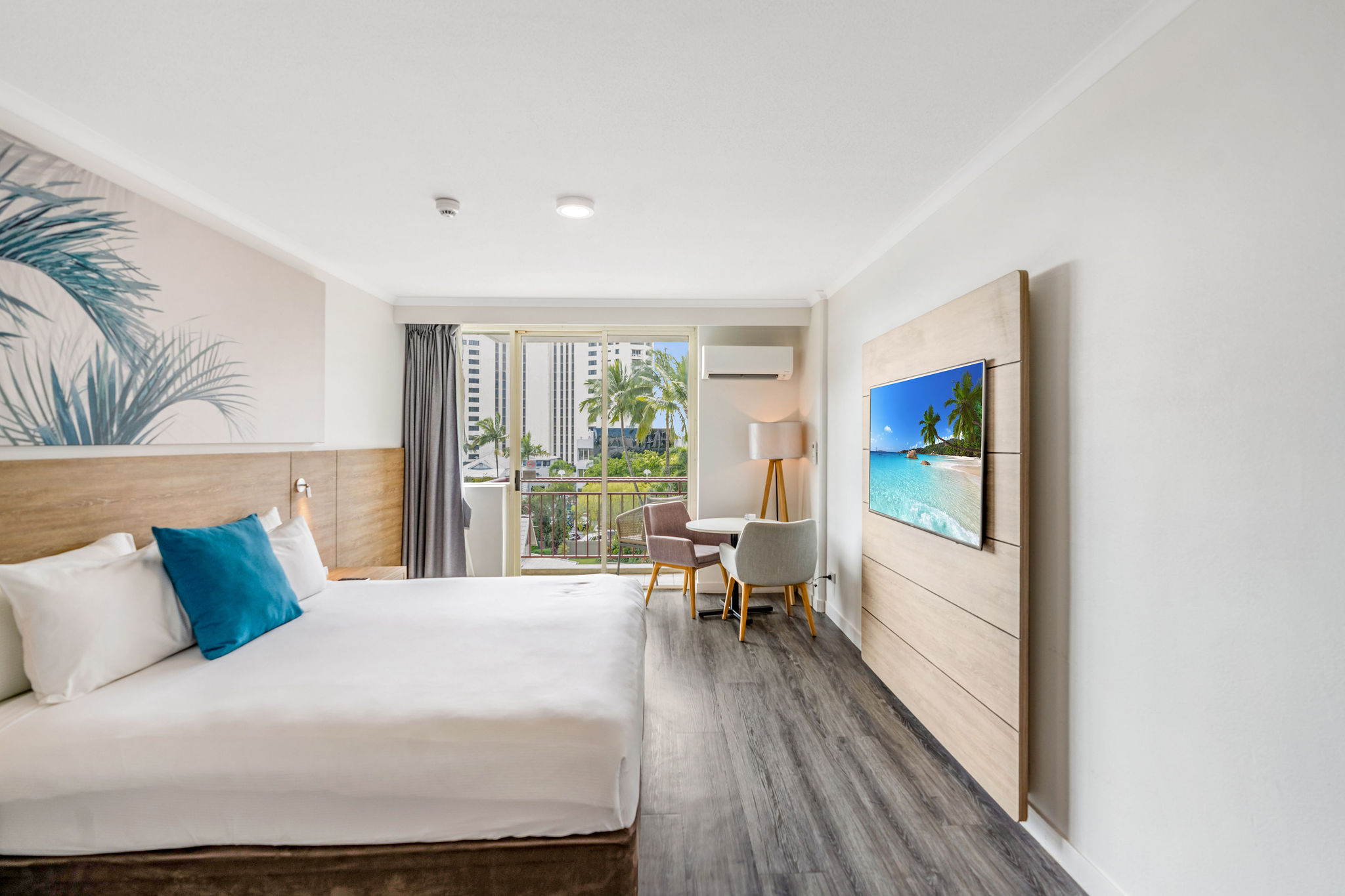 Located in the heart of Cairns, our Standard Rooms offer views of the resort gardens, providing a peaceful backdrop that complements the relaxed atmosphere. Enjoy natural light streaming through large windows, and let the tranquil vibe of our resort help you unwind after a day of exploring the Great Barrier Reef, Daintree Rainforest, or Cairns Esplanade.